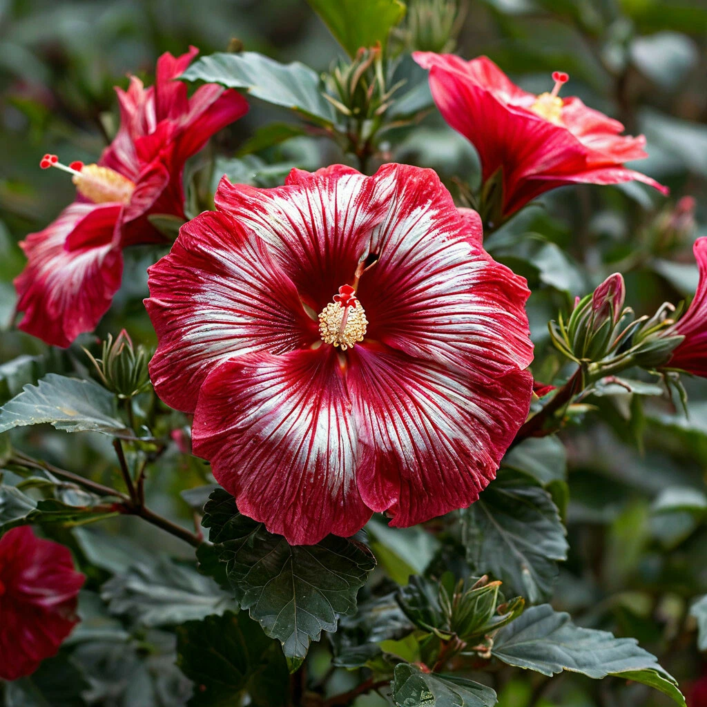- Красный цвет: главная особенность этого сорта — его яркий и насыщенный красный цвет. Цветки гибискуса «Пурпл Мистик» обладают глубоким и чистым красным оттенком, который делает их особенно эффектными и привлекательными.